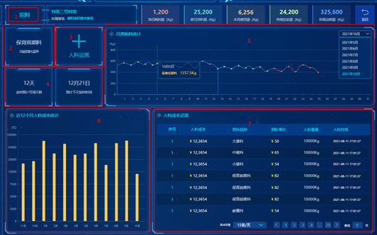 3、顺利获得实时采集的料塔用料数据,结合历史用料数据,精确预测用料计划;